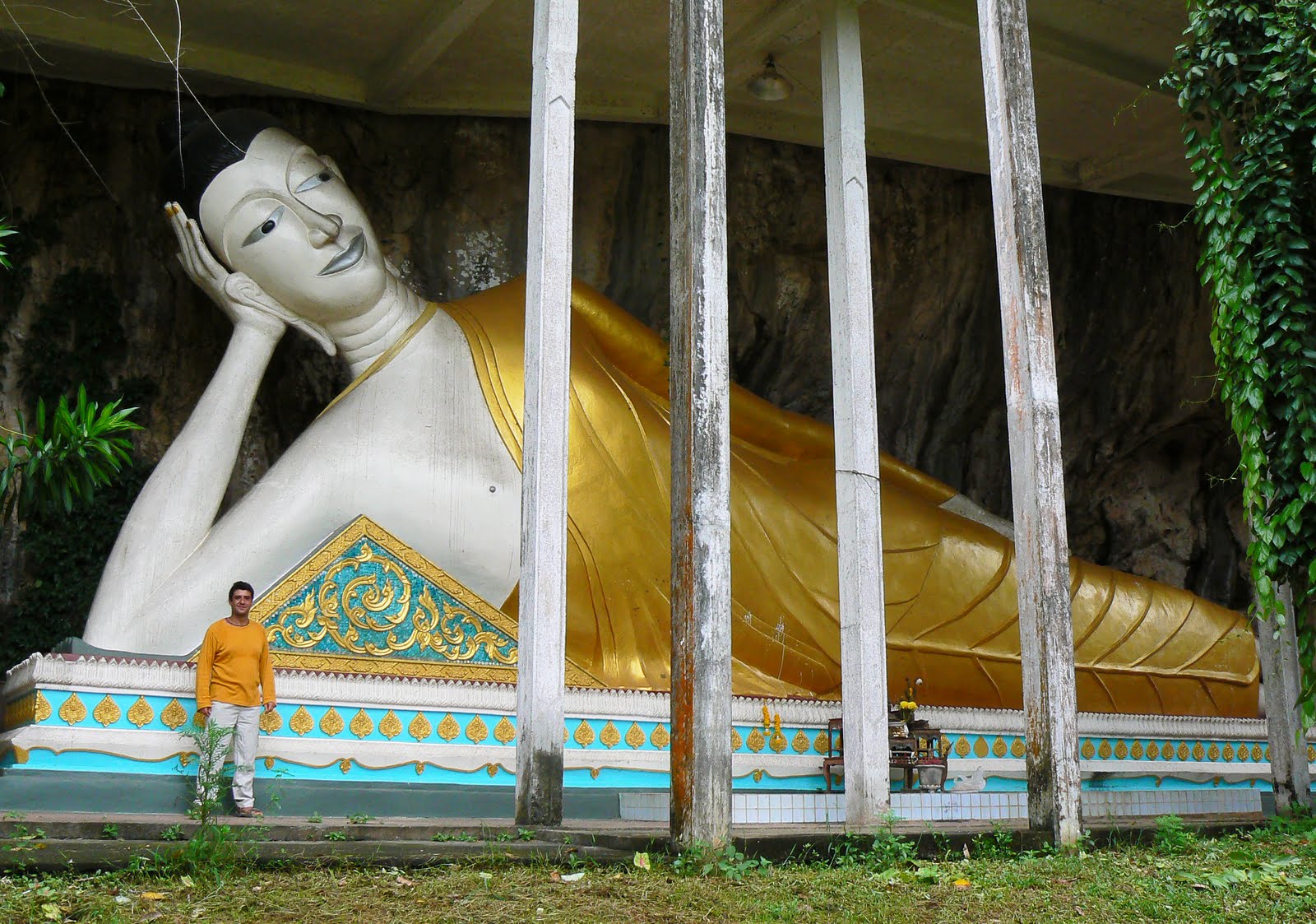 Hace dos días, Javi y yo alquilamos una moto y nos fuimos a recorrer la zona, a perdernos por ahí, a ver las paredes desde todo lo cerca que fuera posible, aunque no te puedes acercar a muchas pues están rodeadas por junglas impenetrables. Llegamos a una pared donde había una cueva a sus pies y vivía un ermitaño. Era algo extraño, no sé si cumplía penitencia o alguna promesa, pero mucha gente paraba en la carretera e iba a visitarlo. Javi aprovechó para escalar un poco en los techos extraplomados de estas cuevas. Las vías de escalada en esta zona son de mucho nivel, Krabi es una meta para escaladores de grado de todo el mundo.